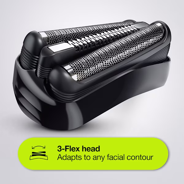 Includes 3-Flex head for efficiency and skin comfort, one beard trimmer head and five combs for stubbles and beards (1-7mm).