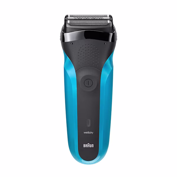 Electric shaver with three pressure-sensitive shaving elements for efficiency and skin comfort.