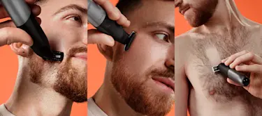 Trim, style, shave with one tool: beard trimmer, body shaver and electric razor for men. For face (1, 2, 3, 5mm combs) and body (sensitive comb).